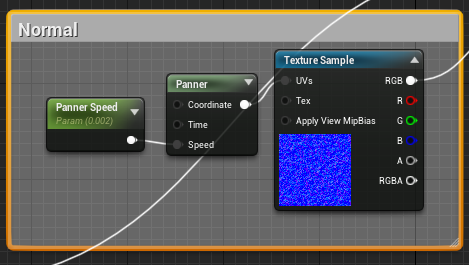 여기서도 다루었지만, Panner은 UV좌표를 이동시킨다. 해당하는건 0.002 속도마다 UV좌표를 흔들어 놓는다.