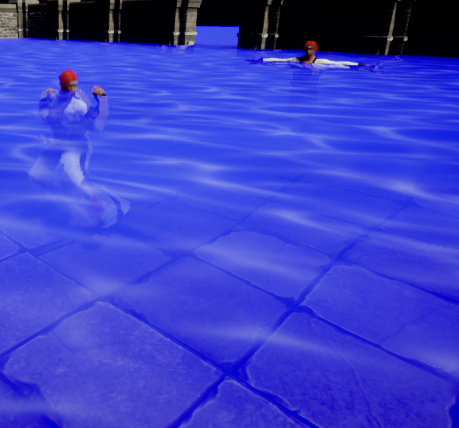 바다용 큐브를 깔아 놓으면 Pixel Depth 상으로 바다 속까지 닿지 않는다.