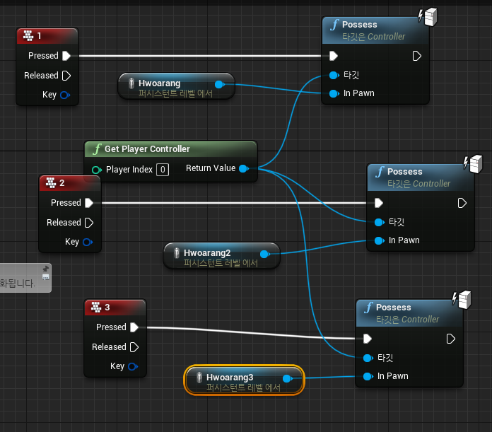 참조: https://docs.unrealengine.com/4.27/ko/InteractiveExperiences/HowTo/PossessPawns/Blueprints/