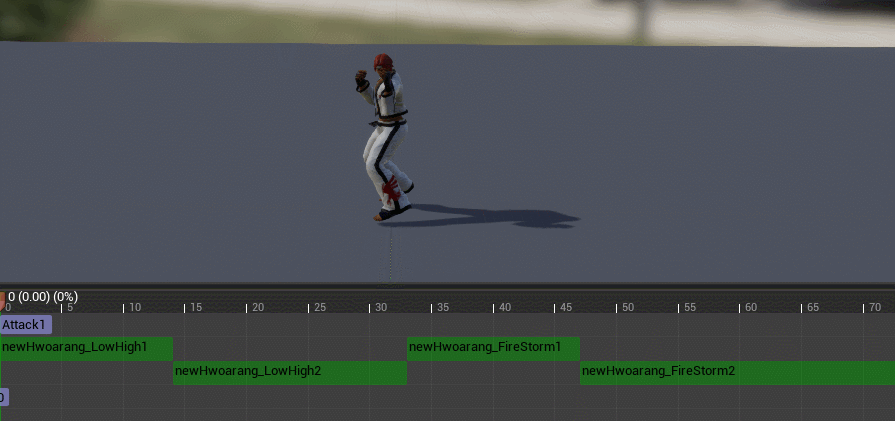 캐릭터에 공격을 넣기위해 연속공격을 누르고 공격하는 애니메이션을 만든다.