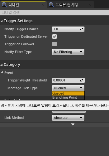 각 노티파이 클릭 후 Motion Tick Type을 Branching Point로 할것.