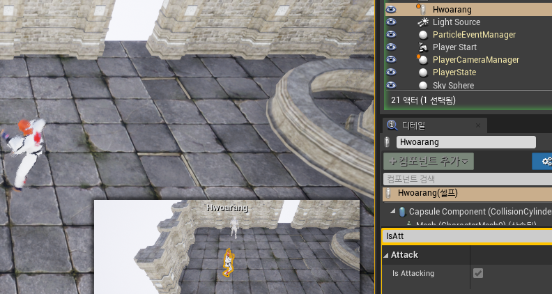 빌드 시, 플레이어에 IsAttacking이 추가된다.