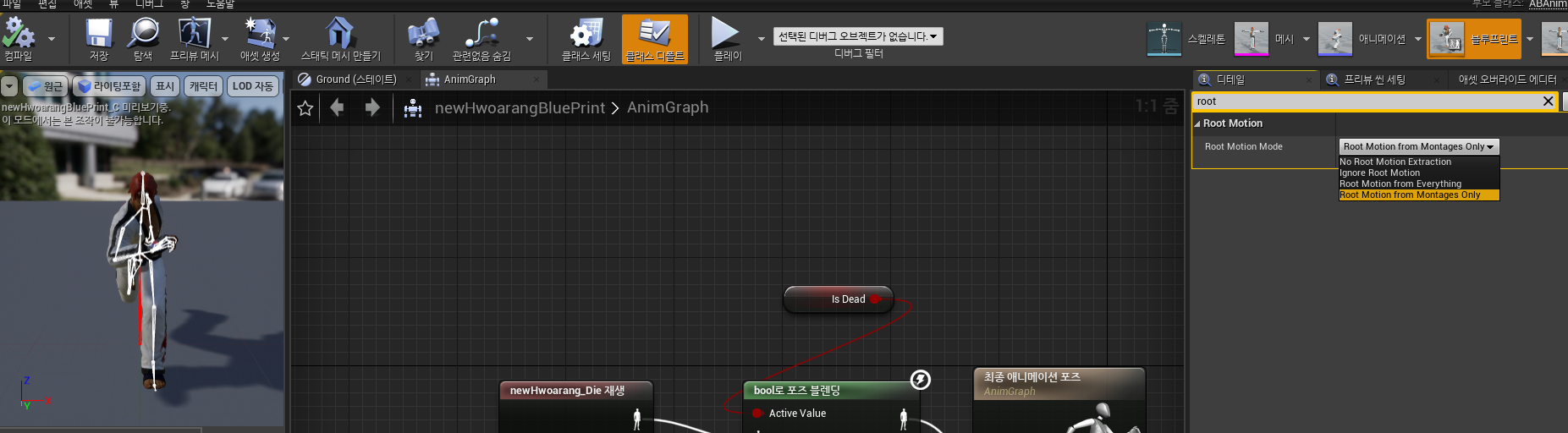 애니메이션 블루프린트 - 디테일에 Root motion 전용 옵션이 존재한다.