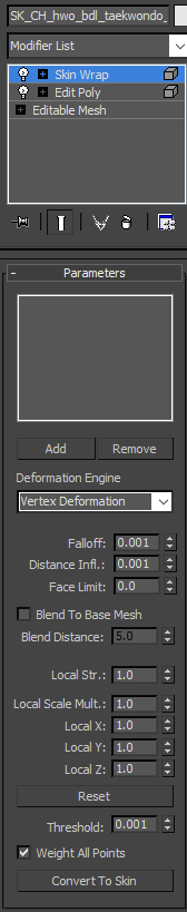 SKIN WRAP이라는 기능으로, 모델링이 유사하면 유사할수록 작업시간이 훨씬 줄어든다.