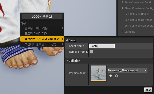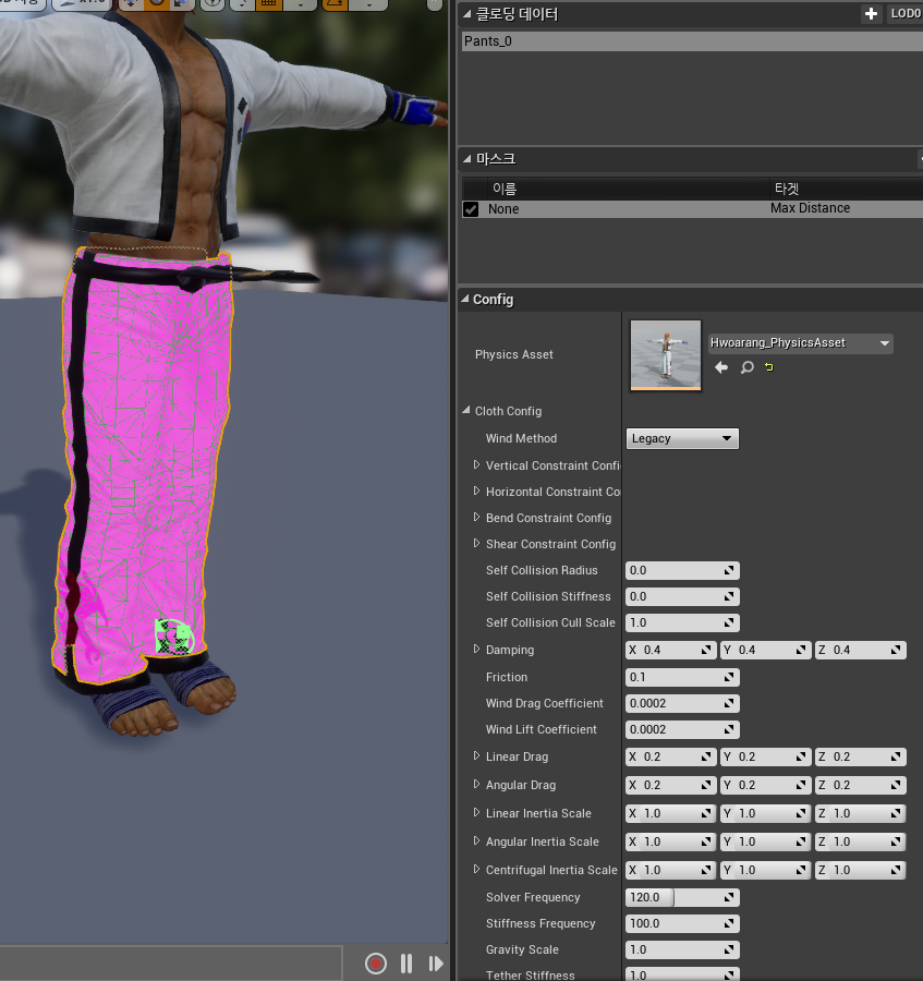 Physics Asset : 해당 클로딩 데이터가 어떤 물리에 영향을 받을것인가?