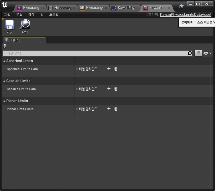 그런데 이런경우, 모든 피직스에 일일히 세팅을 해줘야하니 문제가 된다.해서 바로 아래에 있는 Limits Data를 사용한다.
